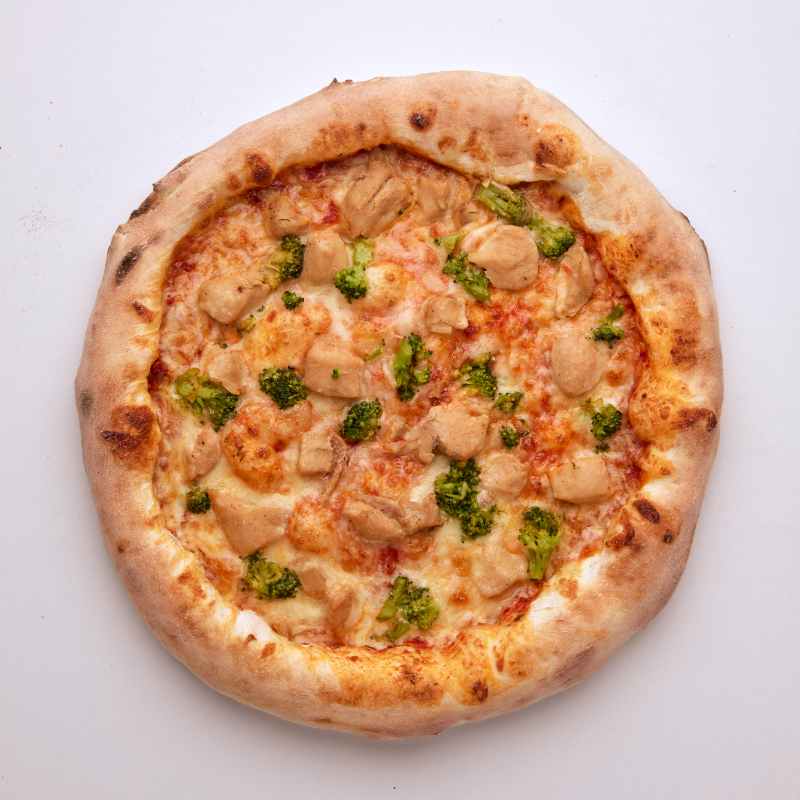 Sos domatesh, mozzarella, brokoli, mish pule, salcë hudhre.