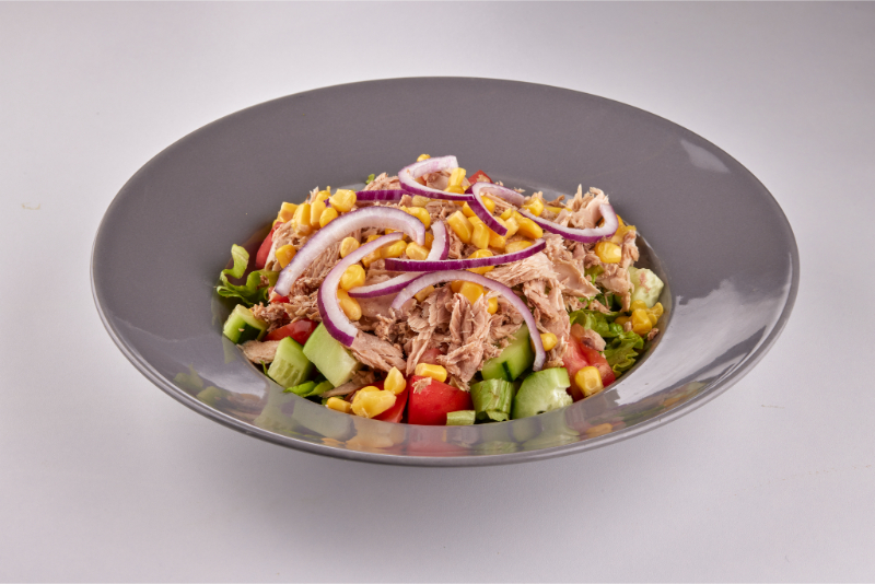 Qepë, misër, sallatë e gjelbër, tuna, ullinjë