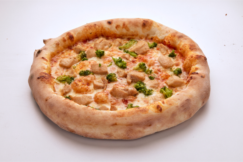 Sos domatesh, mozzarella, brokoli, mish pule, salcë hudhre.