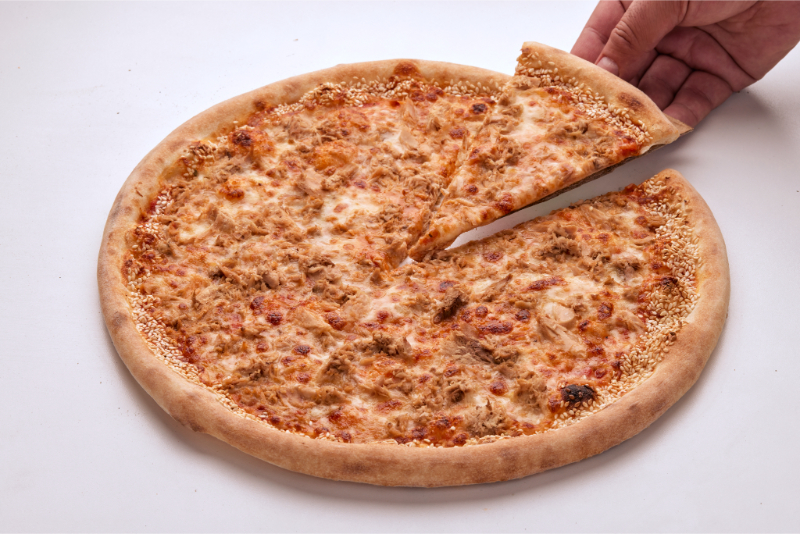 Salcë domatesh, mozzarella, tuna, susam, oregano.